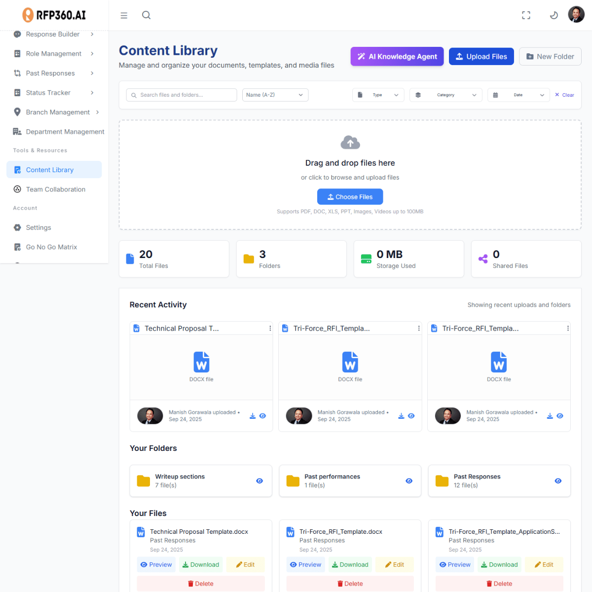 Procurement often involves sensitive financial, technical, and legal information. RFP360.ai ensures that every document, decision, and dataset remains secure, compliant, and auditable.